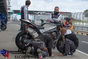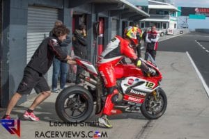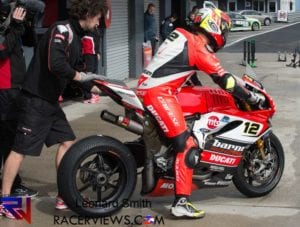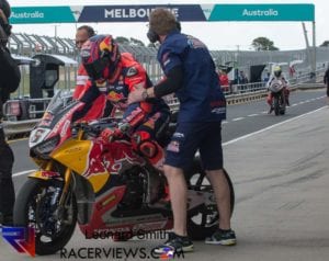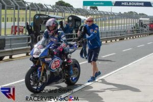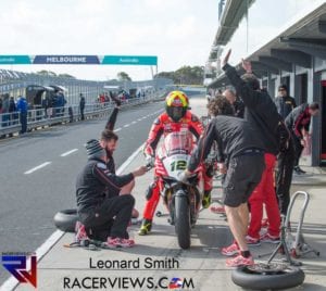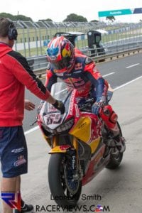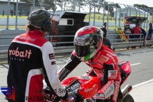 Melandri made a spectacular return to the championship in his first WorldSBK race since 2014, taking the lead off the line and running at the front for several laps only for his day to end in frustration after a crash at the Southern Loop with 8 laps to go.