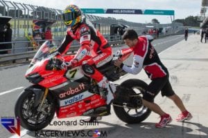 Eugene Laverty (Milwaukee Aprilia), Michael van der Mark (Pata Yamaha Official WorldSBK Team) and Randy Krummenacher (Kawasaki Puccetti Racing) completed the top ten, with Krummenacher producing an impressive ride on his WorldSBK debut.