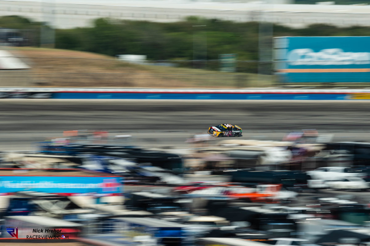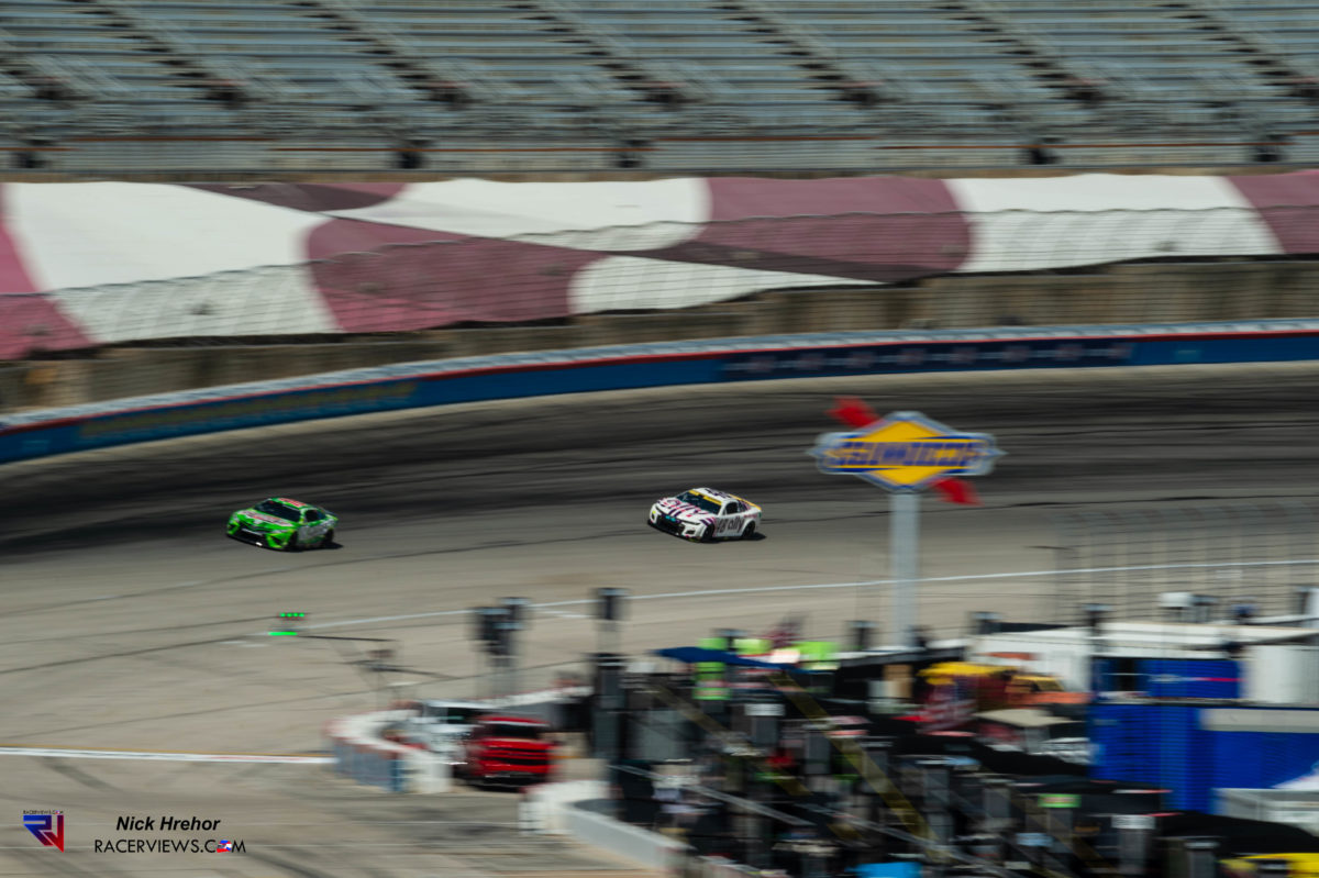 Think about that for a moment…5.3376 seconds difference in a car that weighs over 3400 lbs fully loaded with the driver, a 40mph average speed deficit, and with front mounted V8 vs a 1600lb, rocketship, mid-engined turbocharged v6 IndyCar. That sort of performance is mind boggling when you crunch the numbers. Stock cars shouldn’t go that quick, and yet they do. Because of the size of the car, and the speed at which they close on you, they are some of the quickest cars I’ve ever photographed in person.
