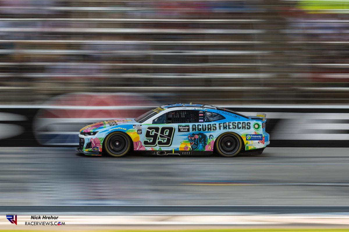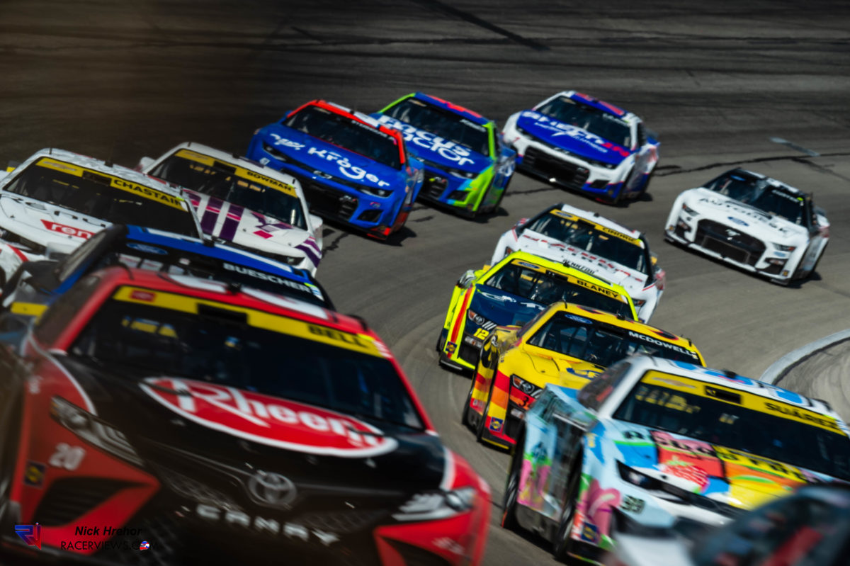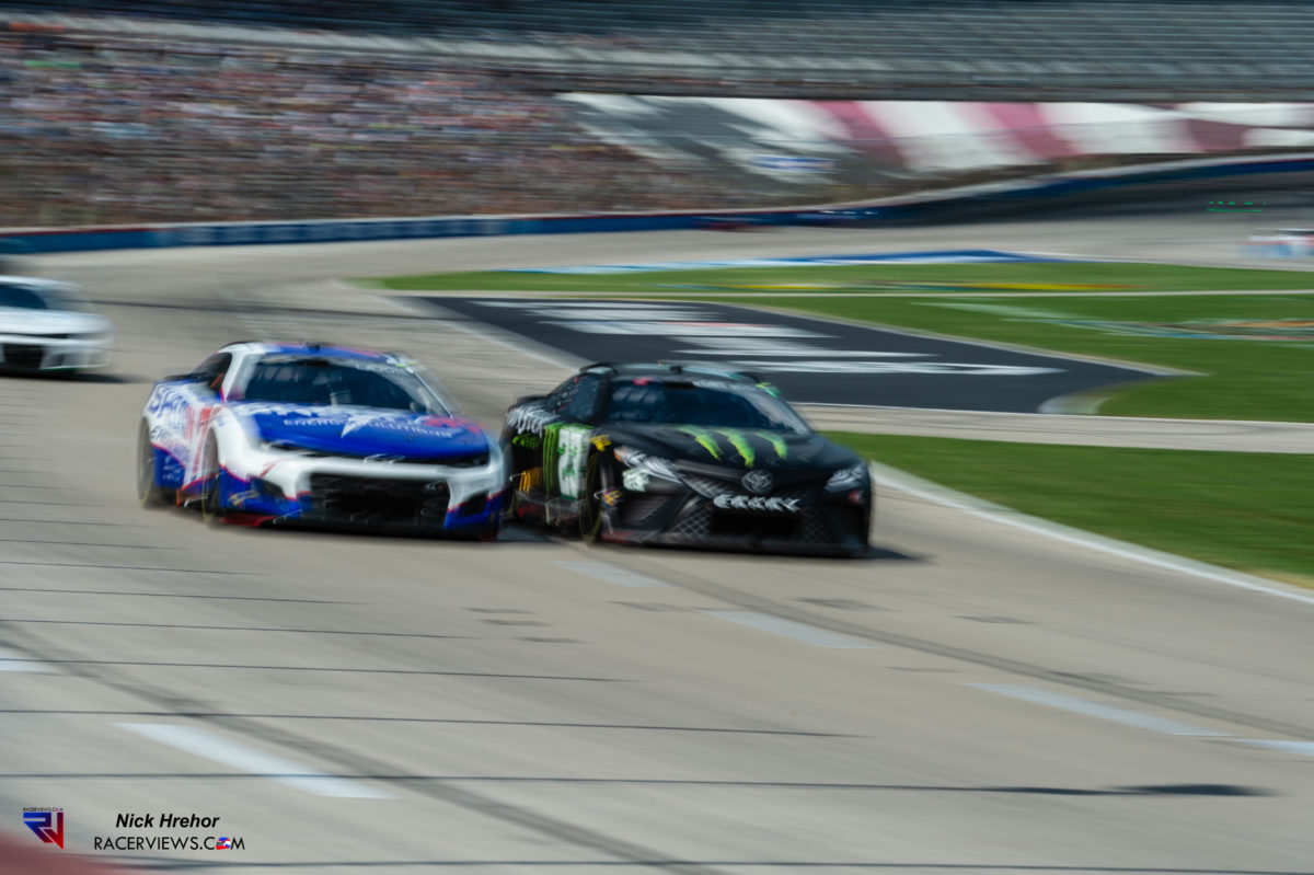 The only words that come to mind when a full field of cars comes past you while you are pressing the shutter on your camera is “holy shit”. Sundays race had a field of 36 cars, each with 670 horsepower in the current package NASCAR is using…that comes out to a combined 24,120 horsepower coming towards you at over 180mph. For comparison, the modern diesel locomotives pack roughly 4,000-5,000 horsepower and top out around 125 mph for peak speed.