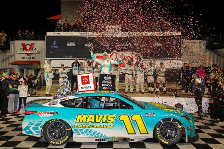 There’s nothing like winning at home and for the 5th time in his career Denny Hamlin has claimed victory in front of the home crowd. The #11 driver stole the lead from the dominant #19 of teammate Martin Truex Jr. as a late caution fell with only a few laps remaining, his pit crew coming in clutch to jump from 3rd to 1st for the final restart with 2 laps to go in overtime. With fresher tires and the advantage of the inside line, Hamlin leapt at the flag and never looked back for his 53rd career victory and 2nd of 2024.